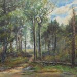 If you ever desire to see unique Berks County landscapes from an artist’s perspective, look no further than Mary B. Leisz (1876–1935). Born in Reading, PA and taught by prominent Berks County landscape artist Christopher Shearer, who was RPM’s first curator, Leisz was a prolific modern painter. She mastered both oil and watercolor and eventually developed her own distinct style. Her paintings usually portray nocturnal landscapes, rural scenes, and barnyard chickens, reflecting her life in Berks County. While the Reading Public Museum houses her autumnal paintings like, Tulpehocken Creek and Quiet Autumn, her landscape artwork Forest Scene focuses on the warmer days ahead in Reading.