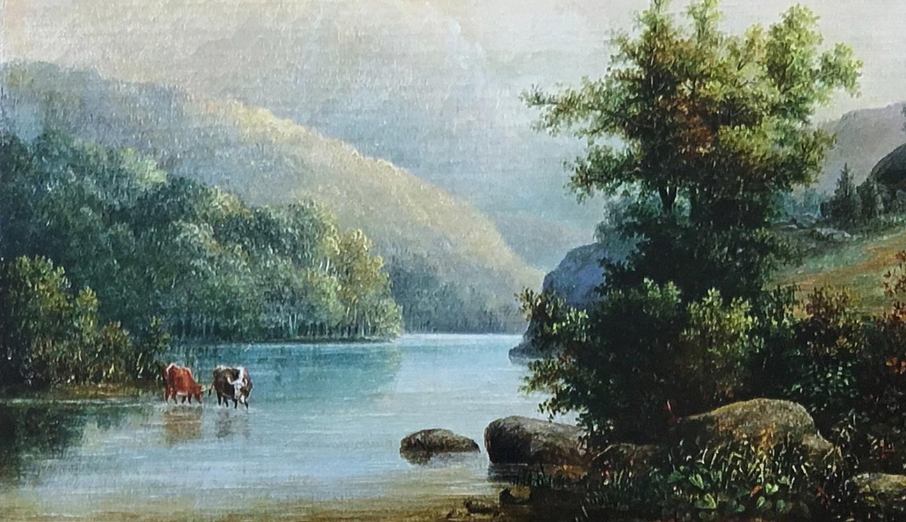 We had several takers on the pieces offered, raising thousands of dollars in the process, and some of the restoration has now been completed. See the before and after views of Riverscape by John Heyl Raser, which was originally a gift from Dr. Levi Mengel himself! The wording for the new placard is below, and although this donor chose to remain anonymous, if you’d like to be named or honor someone by restoring a work in their name, let us know as we have more candidates for adoption. This work is now back in our possession and will go out on display next week, so come by and see it in person.