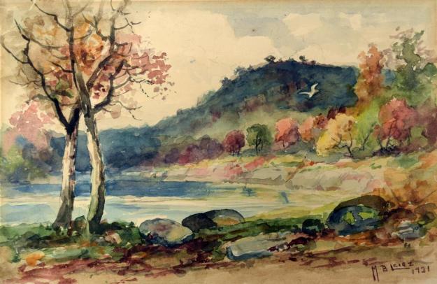 If you ever desire to see unique Berks County landscapes from an artist’s perspective, look no further than Mary B. Leisz (1876–1935). Born in Reading, PA and taught by prominent Berks County landscape artist Christopher Shearer, who was RPM’s first curator, Leisz was a prolific modern painter. She mastered both oil and watercolor and eventually developed her own distinct style. Her paintings usually portray nocturnal landscapes, rural scenes, and barnyard chickens, reflecting her life in Berks County. While the Reading Public Museum houses her autumnal paintings like, Tulpehocken Creek and Quiet Autumn, her landscape artwork Forest Scene focuses on the warmer days ahead in Reading.