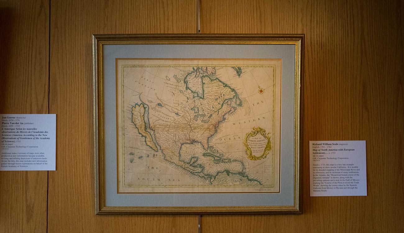 The dissemination of new information and the subsequent refinement of maps was not always linear, and information was often borrowed from earlier maps and combined with a mapmaker’s artistic license to create a unique product. This resulted in traceable idiosyncrasies appearing on maps made throughout Europe over the course of several decades. One of the greatest cartographic errors in mapping the New World was the depiction of California as an island – a phenomenon perpetuated in nearly every map displayed here. Over half a century after explorers disproved the insular theory, mapmakers continued the tradition of detaching the landmass in what can only be described as “the island of imagination winning over terrestrial reality.”