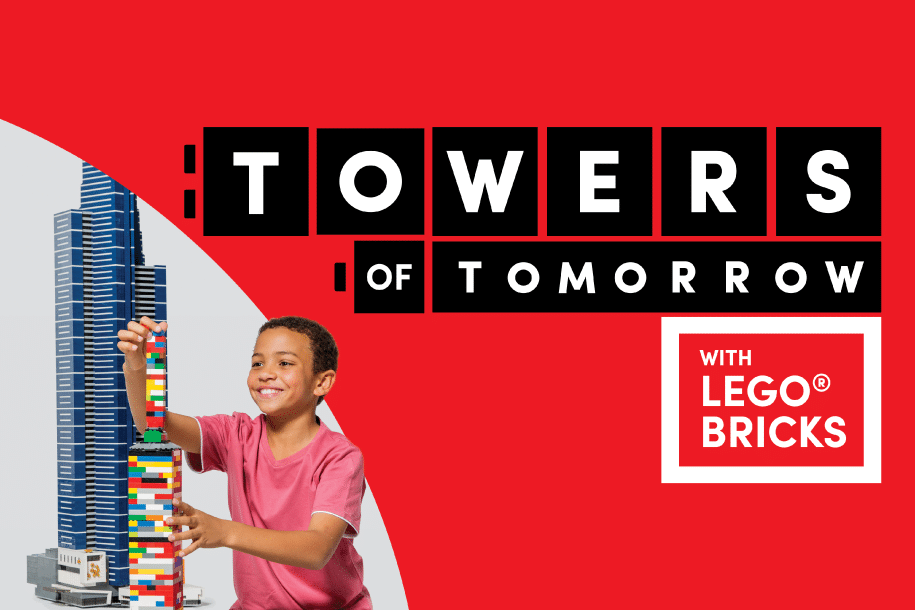Get ready to build and explore the construction of some of the world’s most impressive skyscrapers in Towers of Tomorrow with LEGO® Bricks, an interactive exhibition combining the science of architecture with the creativity of design in a lively, imaginative space.